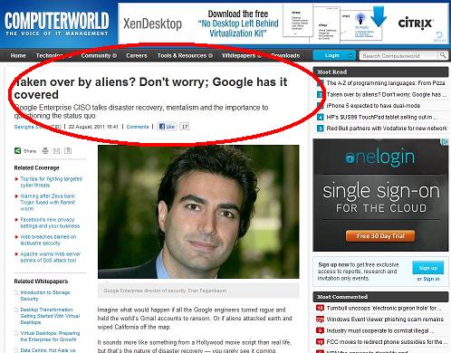 Fue lo que menciono éste 22 de Agosto (2011) el Site especializado australiano en análisis de tecnología para computadoras y sistemas CIO Australia publicó una entrevista a Eran Feigenbaum. (entrevista completa)